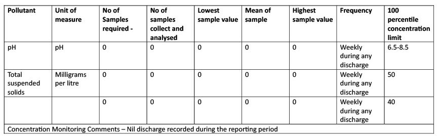 None of the discharge points had runoff during the reporting period & Compliance with Licence Conditions- Licence 11553